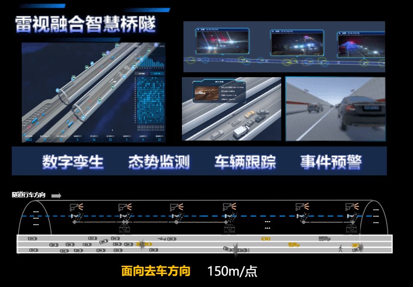 基于雷视一体设备可联动视频监控系统,搭建全要素、多联动、全智能的智慧桥隧感知底座;结合数字孪生技术,真实还原桥隧场景,做到交通态势全掌握、事件发现秒响应,从而提升管理效能,推动数字化转型升级。