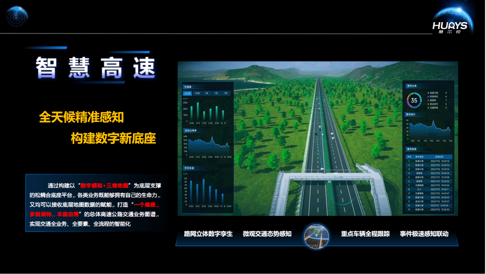 通过构建以“数字感知+三维地图”为底层支撑的松耦合底座平台,各类业务既能够拥有自己的生命力,又均可以接收底层地图数据的赋能,打造“一个底座,多级架构,丰富应用”的总体高速公路交通业务图谱,实现交通全业务、全要素、全流程的智能化。